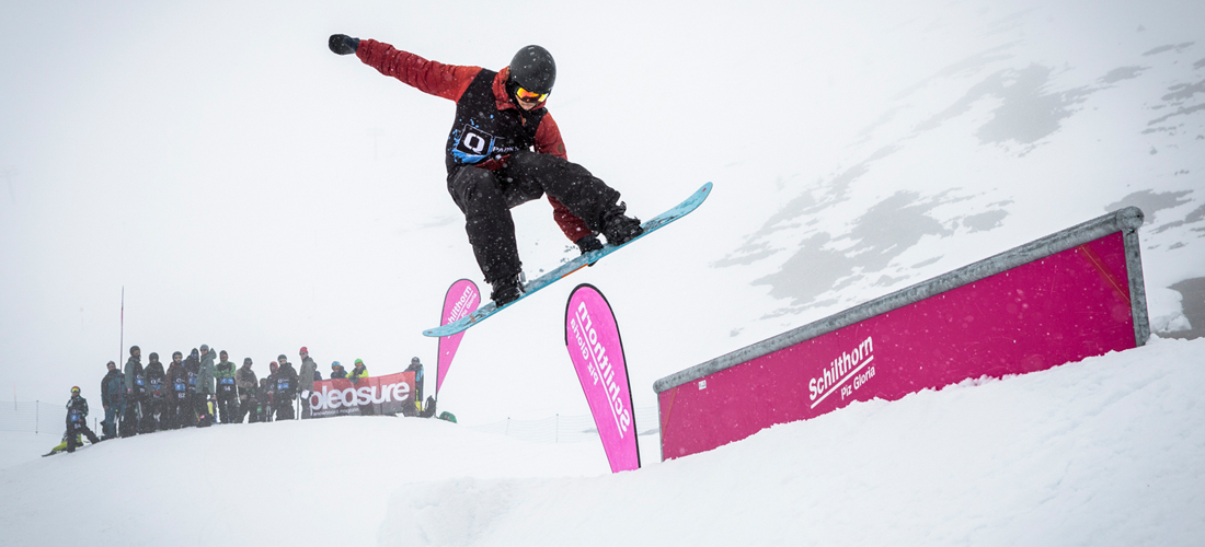 Der SKYLINE SNOWPARK Schilthorn im Berner Oberland feierte am Samstag, dem 21.03.2015 QParks Tour Premiere. Trotz der anspruchsvollen Wetterbedingungen ließen sich viele Rider das Event nicht entgehen und battelten sich mit höchster Motivation um die Podiumsplätze und insgesamt 3.600.- CHF Preisgeld. Wer die Kohlen eingestaubt hat, erfährt ihr hier!